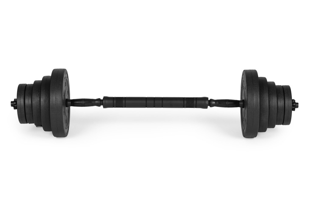 Setul vă permite să combinați rapid halterele într-o barbell de dimensiuni normale, ideală pentru exerciții precum deadlifts, squats sau bench presses. Conexiunea solidă și ajustarea greutății asigură confort și siguranță în timpul antrenamentelor de forță și funcționale - fără a fi nevoie să cumpărați echipamente separate.