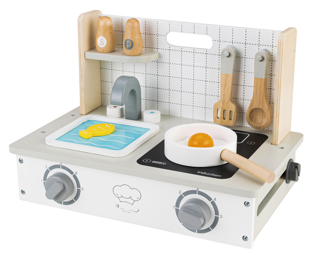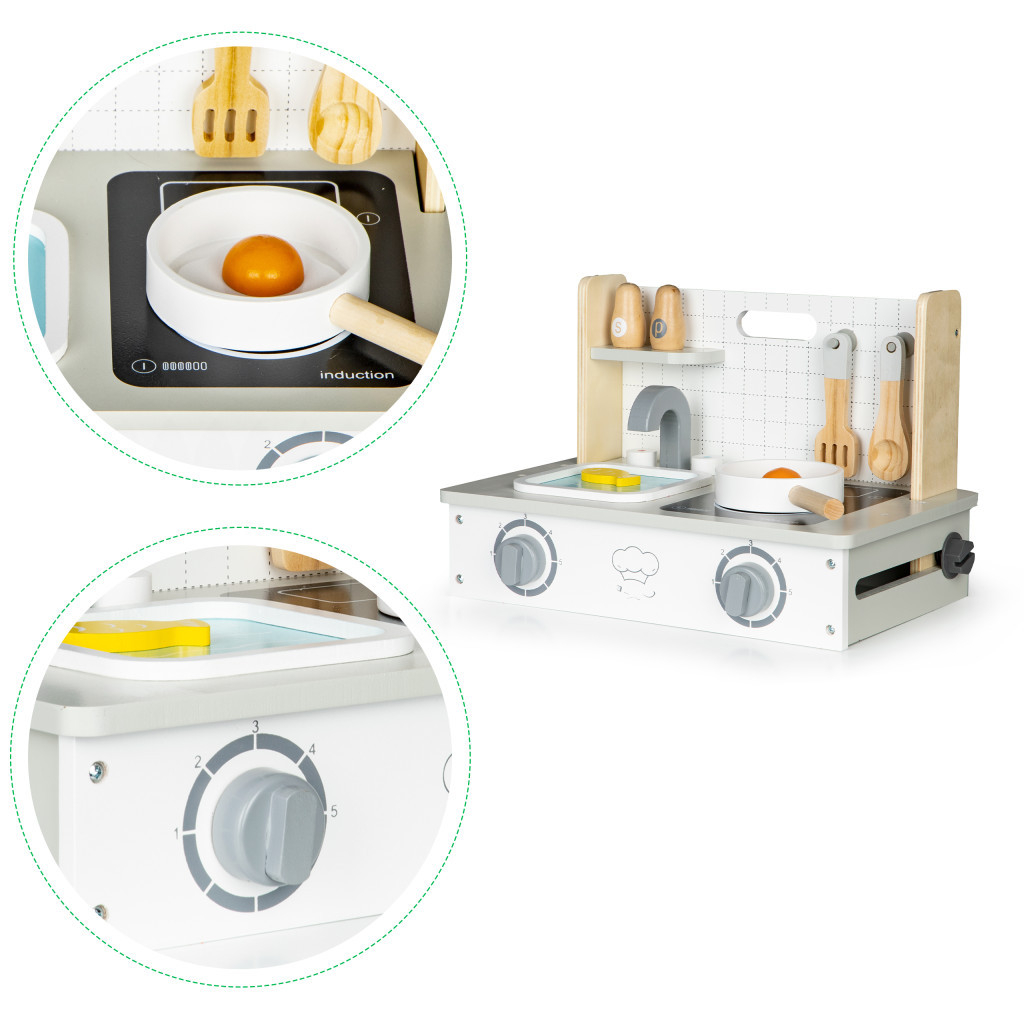 Mini bucătăria reflectă perfect caracterul unei bucătării reale. Detaliile bine alese asigură faptul că copilul dvs. se va juca cu ea ore întregi.