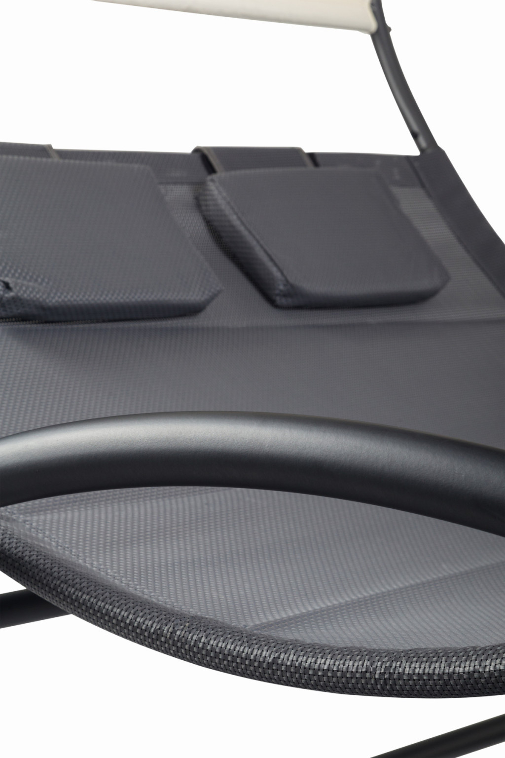 Stabilitatea și siguranța fotoliului culisant se datorează cadrului bine conceput și cursierelor, care permit legănarea ușoară. Copertina mare oferă umbră plăcută în zilele călduroase și protecție împotriva razelor UV, în timp ce mișcarea ușoară de legănare sporește relaxarea în aer liber alături de persoana iubită. Țesătura de înaltă calitate utilizată pentru suprafața șezlongului este respirabilă și impermeabilă, făcându-l rezistent la intemperii.