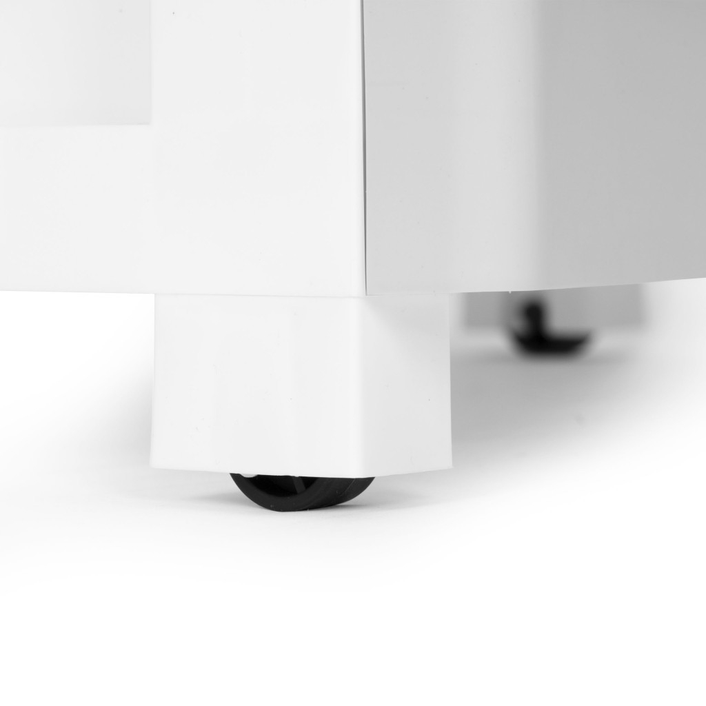 Datorită roților montate pe picioare, raftul poate fi mutat cu ușurință chiar și atunci când este complet încărcat. Acest lucru vă permite să îi schimbați poziția fără a goli sertarele. Puteți rearanja fără efort spațiul și ajusta unitatea de depozitare pentru a se potrivi nevoilor dvs.