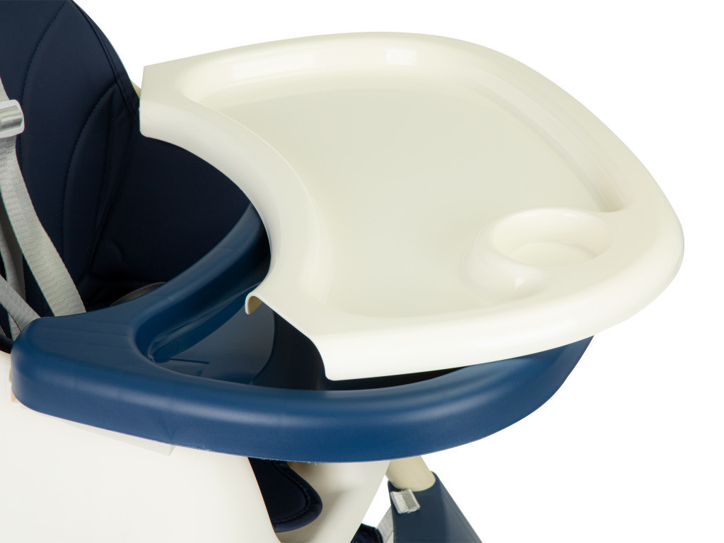 Tava rabatabilă a scaunului permite încărcarea și descărcarea rapidă în timpul utilizării scaunului. Tava detașabilă este sigură pentru mașina de spălat vase.