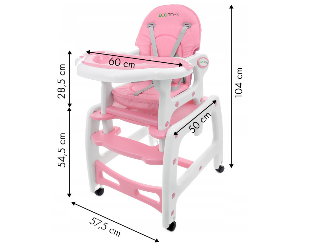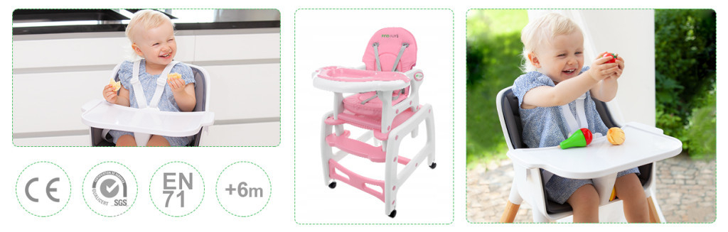 versiune pentru copiii mai independenți. Datorită mesei funcționale, copilul dvs. poate nu numai să mănânce, ci și să se joace, de exemplu să picteze sau să deseneze.