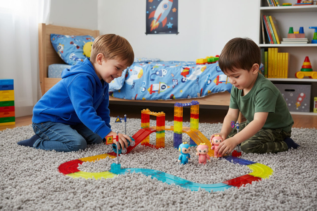Setul de blocuri magnetice este o jucărie ideală care dezvoltă creativitatea, gândirea logică și imaginația spațială. Copiii pot crea în mod independent diverse construcții de șine de mașini. Această activitate stimulează simultan simțurile, sprijină dezvoltarea manuală și încurajează experimentarea independentă. Setul funcționează perfect pentru a construi atât forme simple, cât și proiecte mai avansate, oferind multe ore de distracție inteligentă și captivantă.