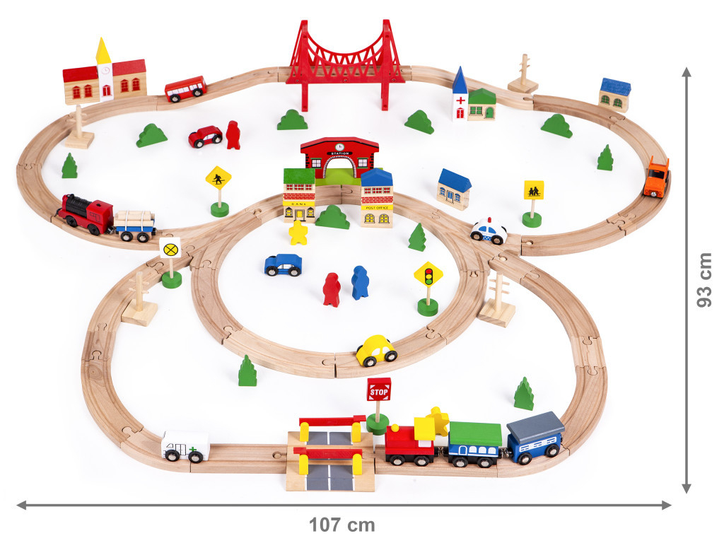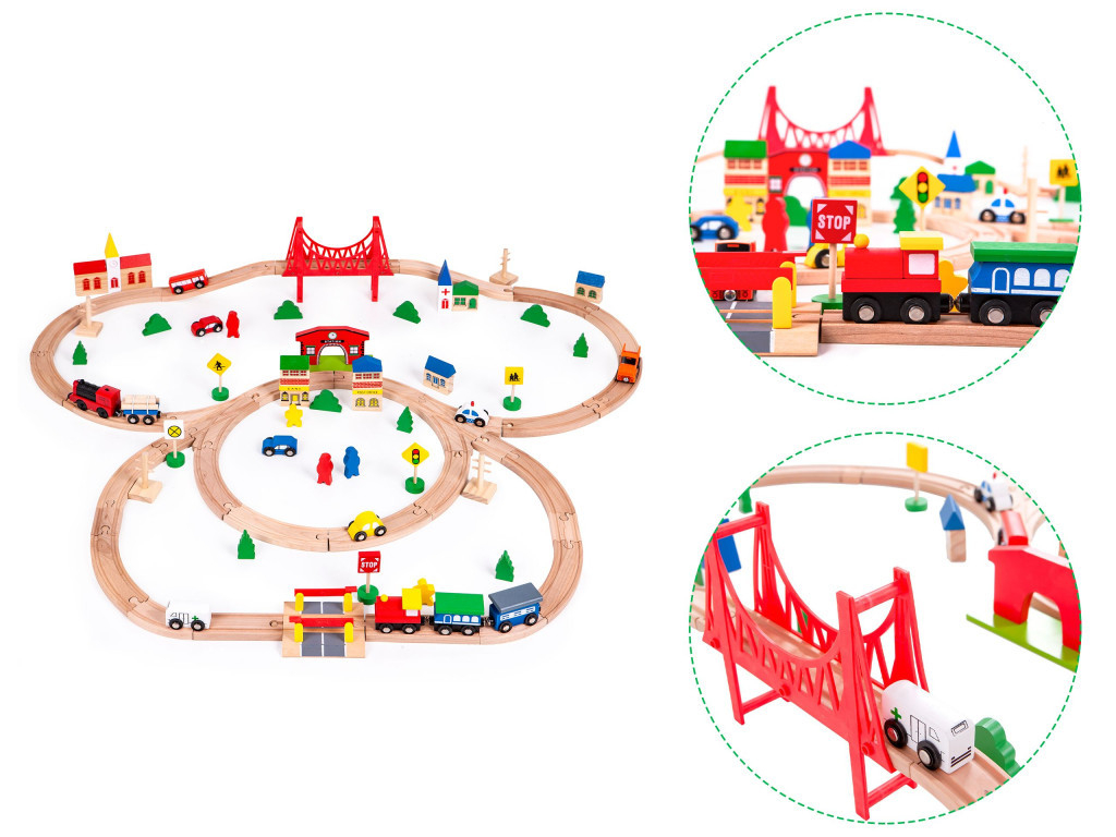 Datorită numărului mare de accesorii, copiii se pot juca la nesfârșit cu jucăria în timp ce își dezvoltă dexteritatea, coordonarea mână-ochi, creativitatea și imaginația: tot ceea ce este important pentru un tânăr. Așezarea șinelor îi va oferi copilului dvs. multă distracție... și pentru că poate fi combinată cu alte kituri ECOTOYS și șine de la alte mărci cunoscute, puteți crea o construcție unică! Vedeți cu ochii voștri!