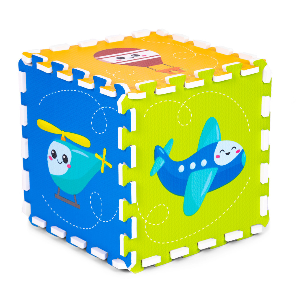Covorul este alcătuit din pătrate colorate, ale căror margini au "dinți" speciali care le permit să fie conectate în tot felul de moduri. Grosimea covorului (1 cm) asigură o protecție adecvată în caz de cădere și îl face plăcut de moale. Covorul are o textură specială antiderapantă și este complet sigur pentru copii.