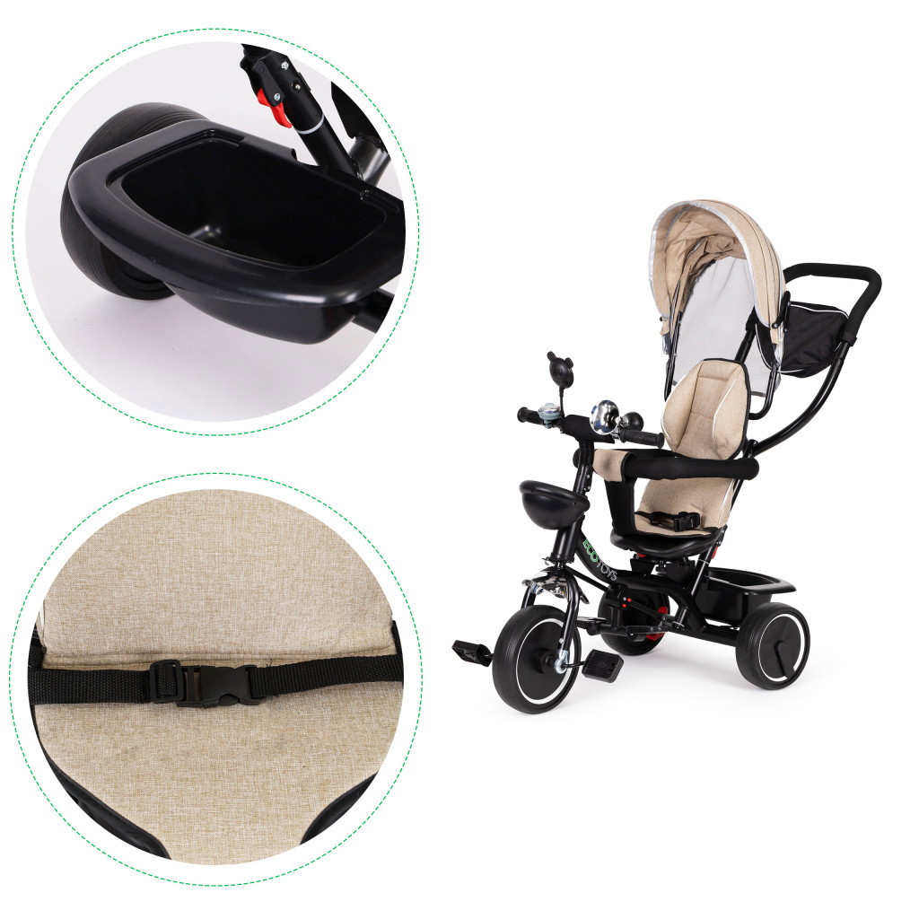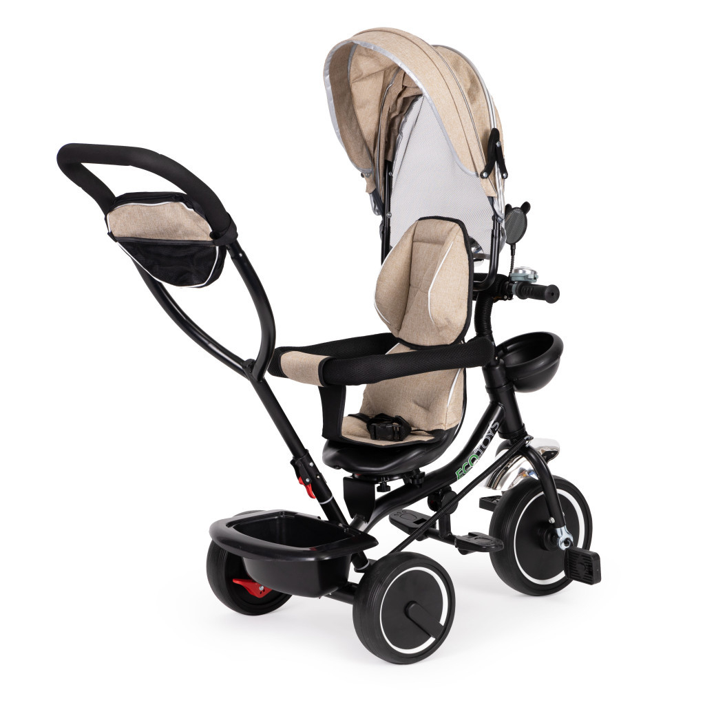 Bicicleta ECOTOYS combinămulte soluții practice pentru a oferi copilului dvs. o joacă confortabilă și sigură. Bicicleta are un spătar moale și confortabil care îl va ține pe cel mic așezat confortabil, iar centurile și șinele îl protejează de căderea de pe scaun. Acoperișul rabatabil oferă protecție împotriva ploii și a soarelui. Cadrul special profilat și scaunul pivotant facilitează urcarea celor mici.