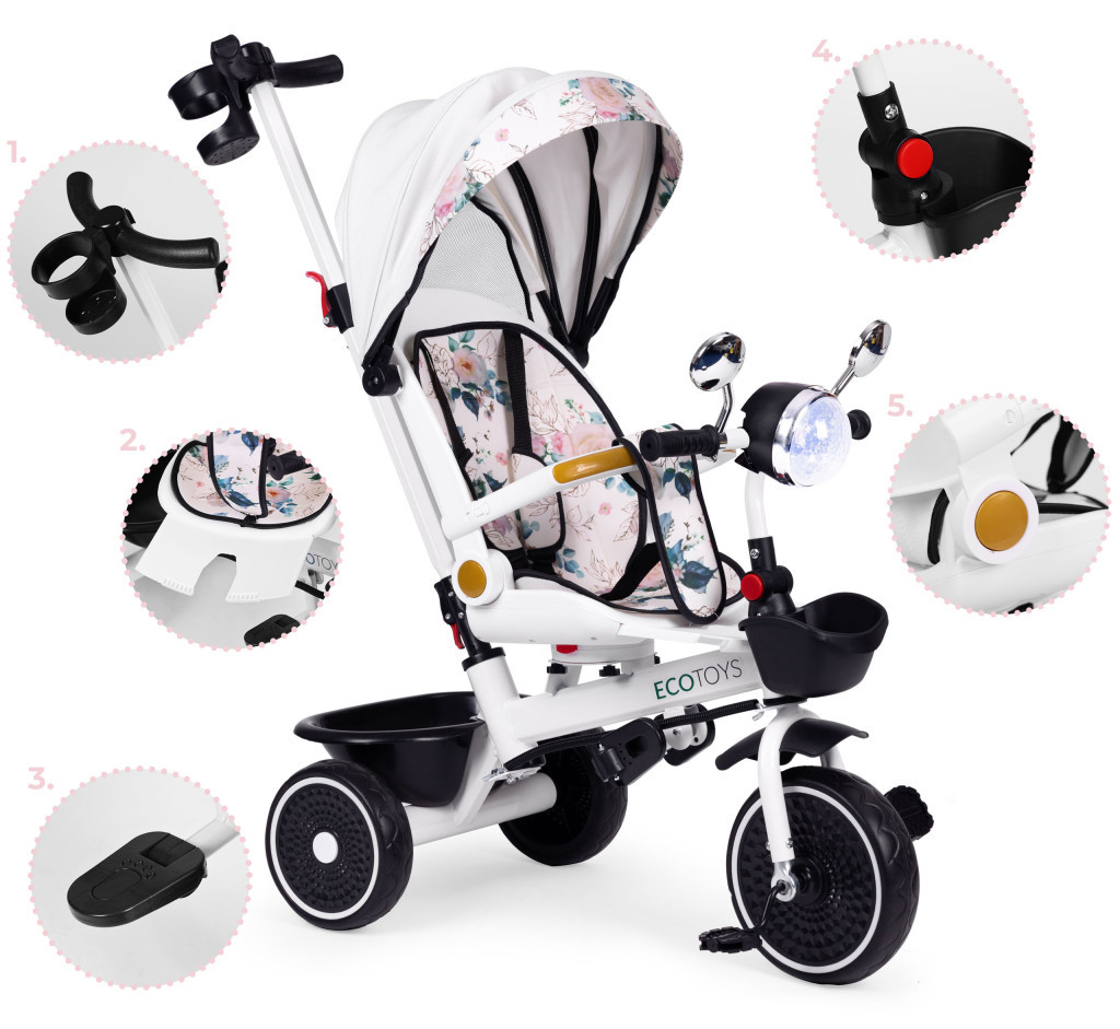 Descoperiți tricicleta ECOTOYS, partenerul ideal pentru plimbările și aventurile copiilor, care combină o serie de soluții practice pentru a oferi copilului dumneavoastră o distracție confortabilă și sigură. Tricicleta este proiectată să crească odată cu micuțul tău, adaptându-se vârstei și nevoilor sale. Nu este doar un mijloc de transport - este o investiție în momente pline de bucurie și siguranță pentru copilul tău.