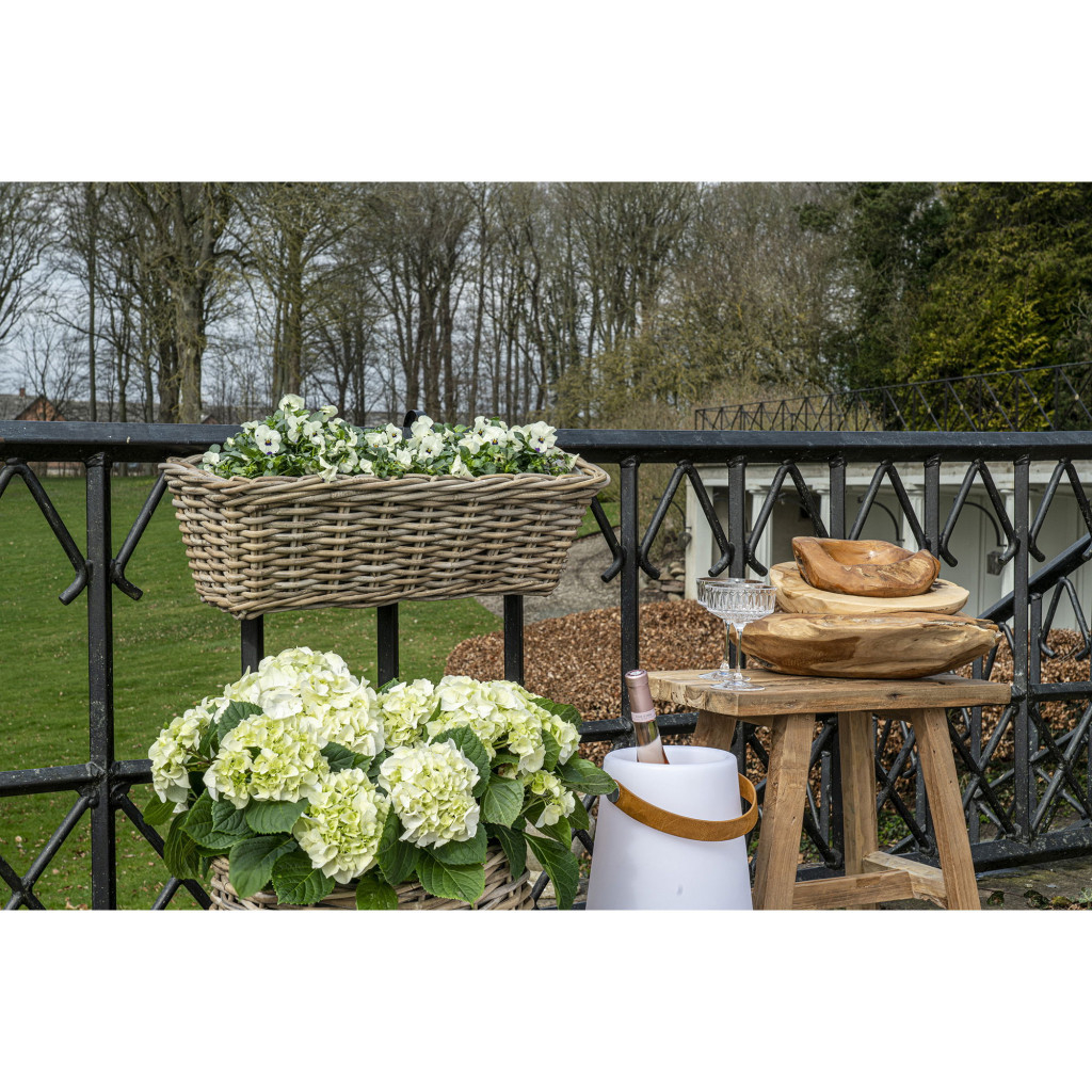 Ghiveci din răchită Batu - Eleganță din ratan natural de cubu pentru plantele tale Material natural, formă curată Ghiveciul din răchită Batu este fabricat din ratan natural de cubu și măsoară 60x20x23 cm, fiind ideal pentru ierburi mici, plante ornamentale sau aranjamente florale. Designul său curat o face perfectă pentru spații moderne, naturale sau rustice - în interior sau în exterior. Dimensiune practică, calitate manuală Forma alungită vă permite să plantați sau să aranjați mai multe plante una lângă alta, facilitând crearea unui mini aranjament de plante. Modelul unic al ratanului împletit manual face ca fiecare piesă să iasă în evidență, oferindu-i în același timp un aspect aerisit, dar robust. O alegere durabilă și sustenabilă Rattanul Kubu este fabricat din tulpina palmierului de apă, care are o durabilitate și o respirabilitate excelente. Este, de asemenea, un material sustenabil, ceea ce îl face o alegere ecologică pentru cei cărora le pasă atât de stil, cât și de amprenta lor ecologică. Pentru cine recomandăm cutia de flori Batu? Pentru cei care iubesc texturile naturale și obiectele realizate manual. Fie că se află pe un balcon, pe un patio sau pe o fereastră luminoasă din bucătărie, cutia de flori Batu va înveseli orice mediu verde. Specificații Dimensiuni: 60 x 20 x 23 cm Material: ratan kubu Culoare: natural Utilizare: interior sau exterior acoperit