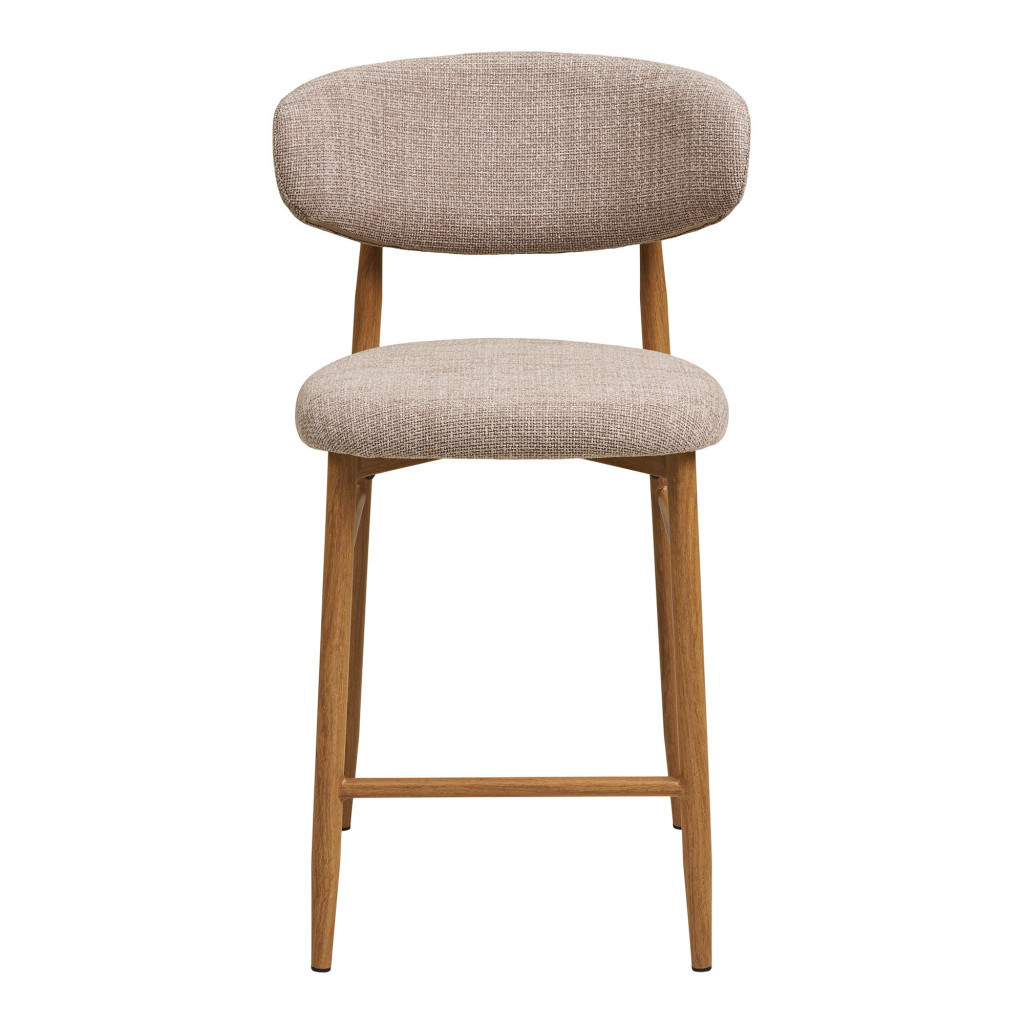 Taburet de bar Levanto - Tapițerie culoarea nisipului, picioare efect stejar