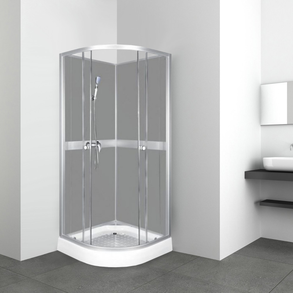 Are pereți din sticlă securizată de 4 mm . Profilele cabinei de duș sunt din aluminiu cromat .