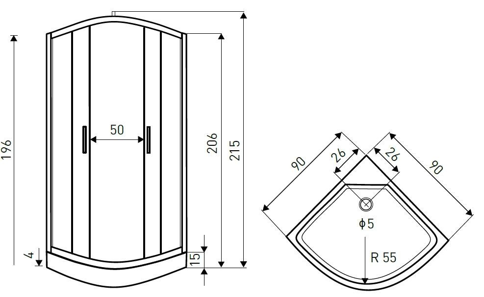Cabină de duș cu hidromasaj curbată Petrus 90x90 cm