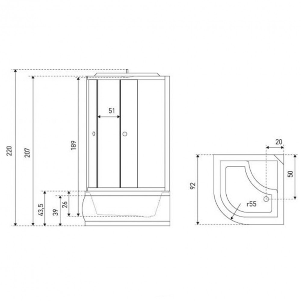 - 90 x 90 x 218 cm