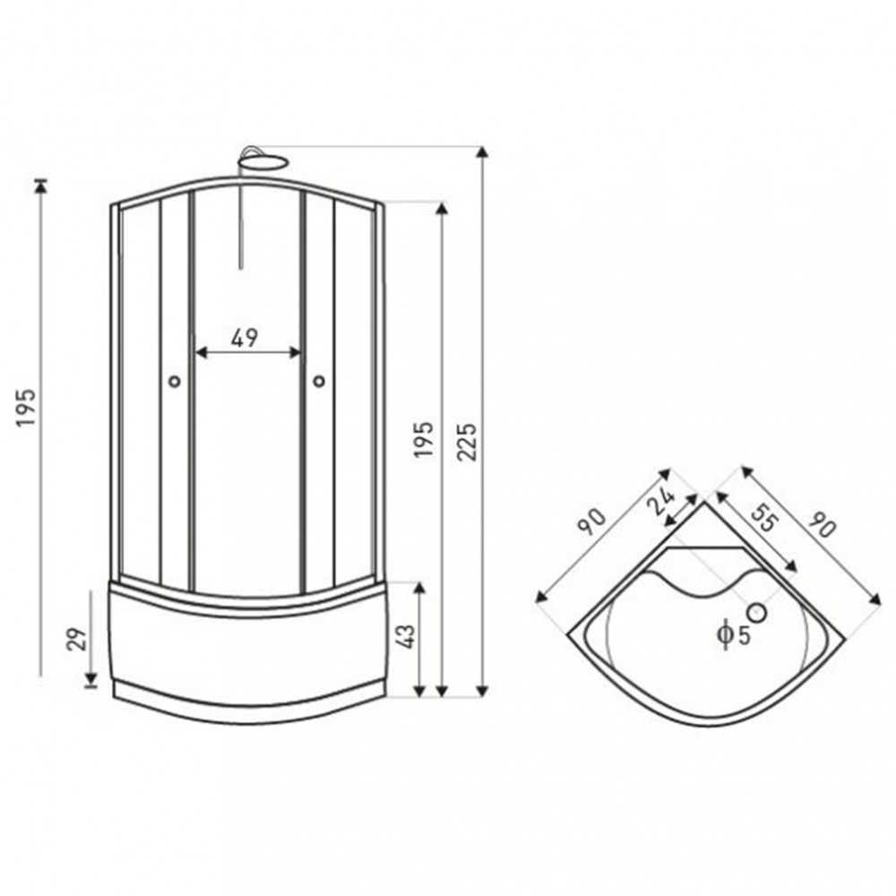 | Dimensiunile cădiței de duș | 90x90x43 cm | Culoarea profilului | satin |
