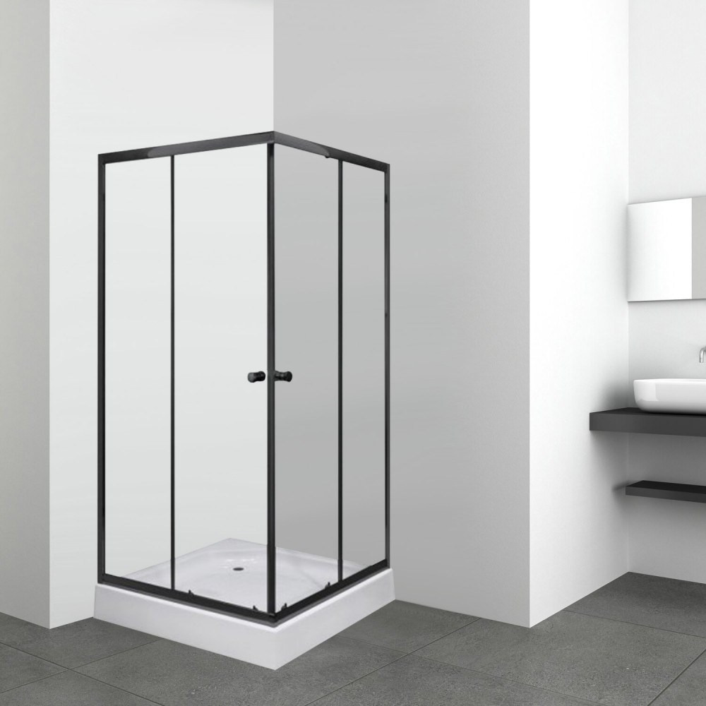 Kerra Cabină de duș pătrată Olga SQ neagră 80x80 cm cu cădiță de duș