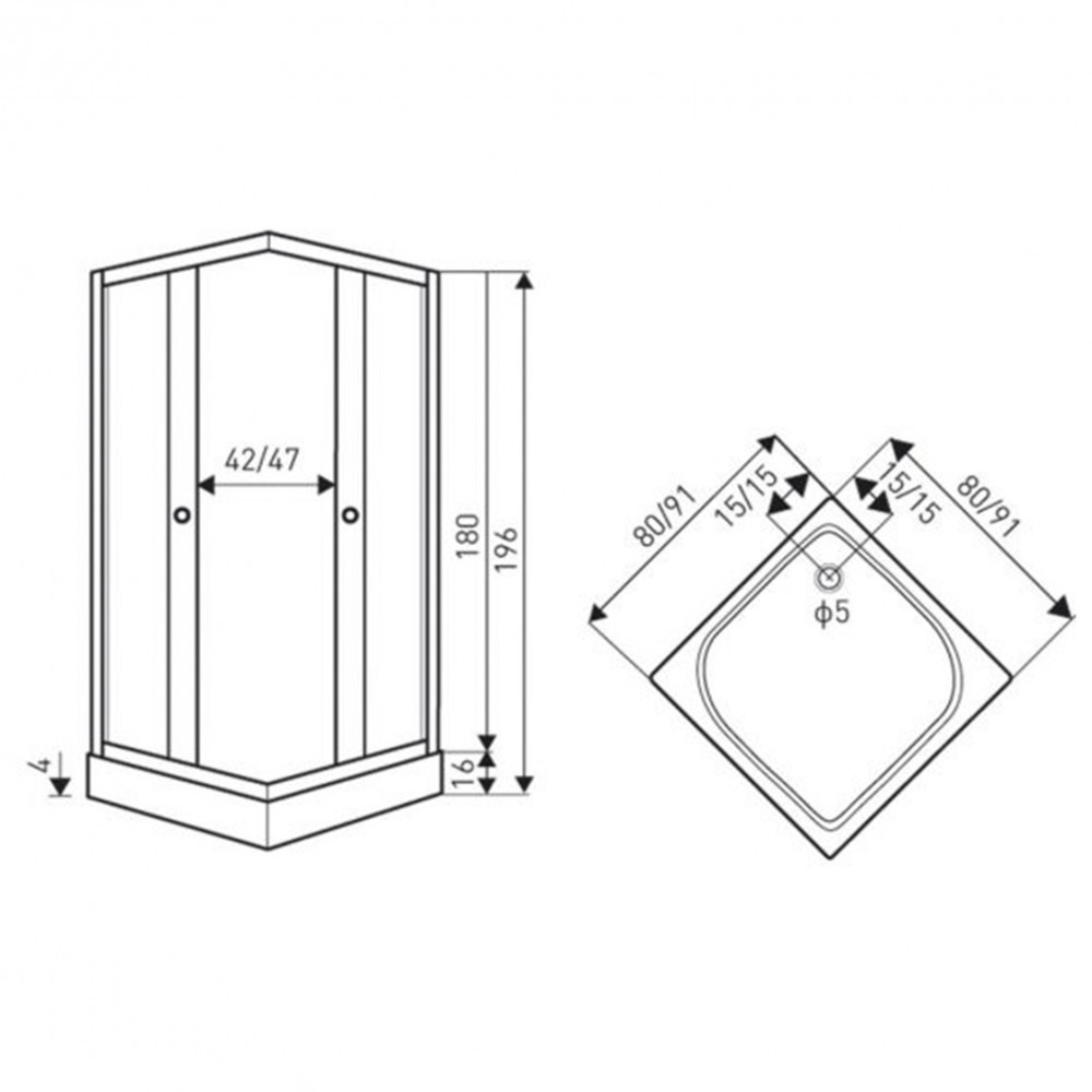 Cabina de duș este echipată cu sticlă securizată securizată de 4 mm . Cabina de duș este disponibilă într-un design pătrat. Este dotat cu uși glisante duble. Cabina de duș are dimensiunile de 80x80x196 cm, iar cădița de duș are dimensiunile de 80x80x16 cm. Cabină de duș Olga SQ disponibilă cu cădiță de duș.