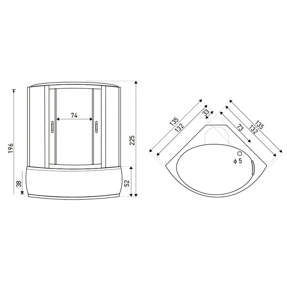 Dimensiuni cădiță de duș: 135 x 135 x 52 cm