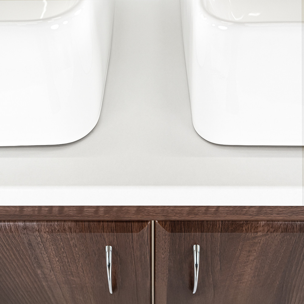 • Finisaj curat, nuc Aida, cu blat de chiuvetă alb.