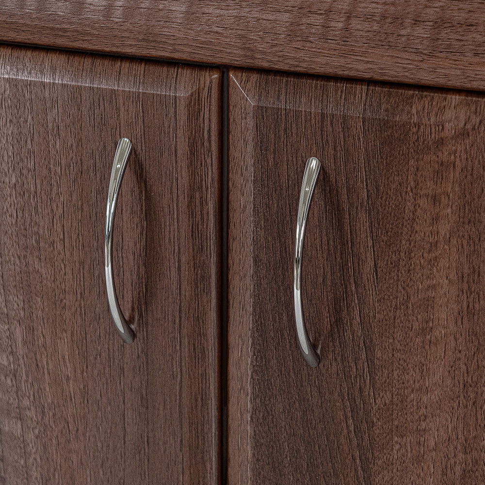Dulapul are un design cu mai multe uși și două sertare practice care oferă spațiu amplu pentru depozitarea prosoapelor, produselor cosmetice sau de curățare. Dulapul este echipat cu mânere cromate elegante pentru o utilizare ușoară.