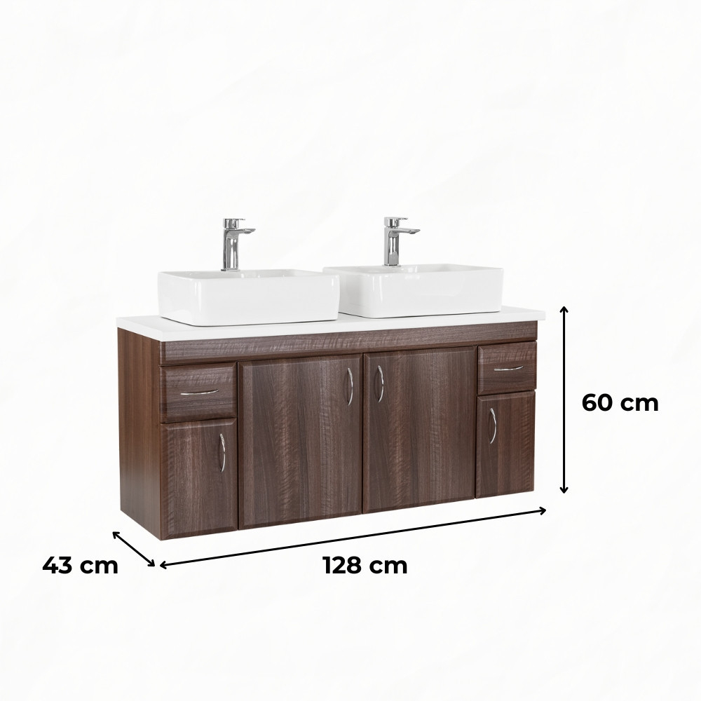 Bianco 130 se caracterizează prin stilul minimalist și caracterul practic. Finisajul cu efect natural oferă un aspect atemporal, în timp ce designul lat de 128 cm oferă suficient spațiu pentru două chiuvete.