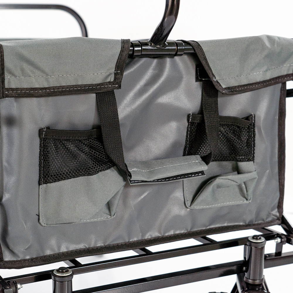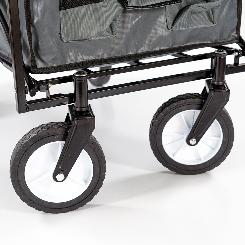 Material: Căruciorul de plajă are un cadru din oțel, care este extrem de stabil și durabil. Coșul este fabricat din țesătură de poliester 600D, care este nu numai rezistentă și durabilă, ci și ușor de curățat. Culoarea gri clasică conferă mașinii un aspect elegant.