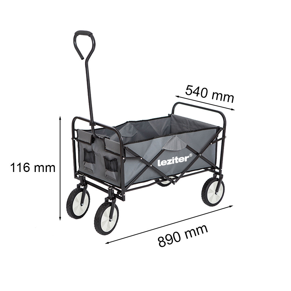 Dimensiuni: Dimensiunile căruciorului de plajă sunt 890X540X54/116mm. Datorită acestor dimensiuni, oferă suficient spațiu pentru transportul obiectelor și echipamentelor, fiind în același timp ușor de pliat. Acest lucru permite depozitarea ușoară sau chiar transportul în mașină, fără a ocupa mult spațiu.
