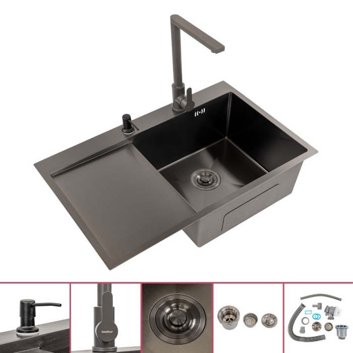 Chiuveta este fabricată din oțel inoxidabil de calitate 304, cu o grosime de 30,8 mm. Acest material nu este doar un favorit al bucătăriilor industriale, ci și al celor care planifică pe termen lung. Este rezistent la coroziune, căldură, impact și zgârieturi cauzate de utilizarea zilnică. Tratamentul de suprafață nanotehnologic formează un strat special pentru a proteja curățenia - respinge grăsimea și murdăria, astfel încât suprafața este întotdeauna igienică și ușor de întreținut.
