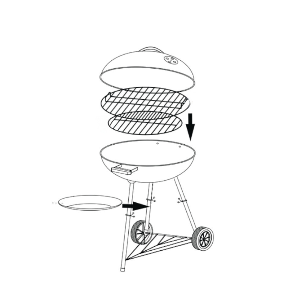 Mânerele confortabile fac capacul ușor de mutat și de ridicat fără a atinge suprafețele fierbinți. Cele trei picioare stabile ale grătarului asigură utilizarea în siguranță, chiar și pe teren accidentat.