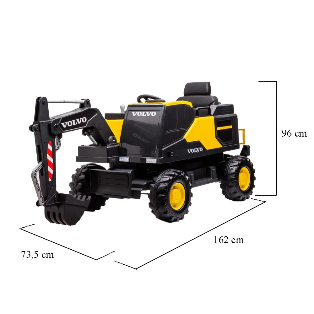 Dimensiuni și specificații: Excavatorul electric Volvo este ideal pentru copiii cu vârsta cuprinsă între 3 și 8 ani. Dimensiunile produsului sunt de 162 × 73,5 × 96 cm, ceea ce oferă un spațiu confortabil pentru șoferii mici. Capacitatea sa maximă de încărcare este de 35 kg, așadar cleștele se adaptează ușor la dimensiunea copilului. Jucăria cântărește 32 kg, ceea ce garantează o utilizare stabilă și sigură.