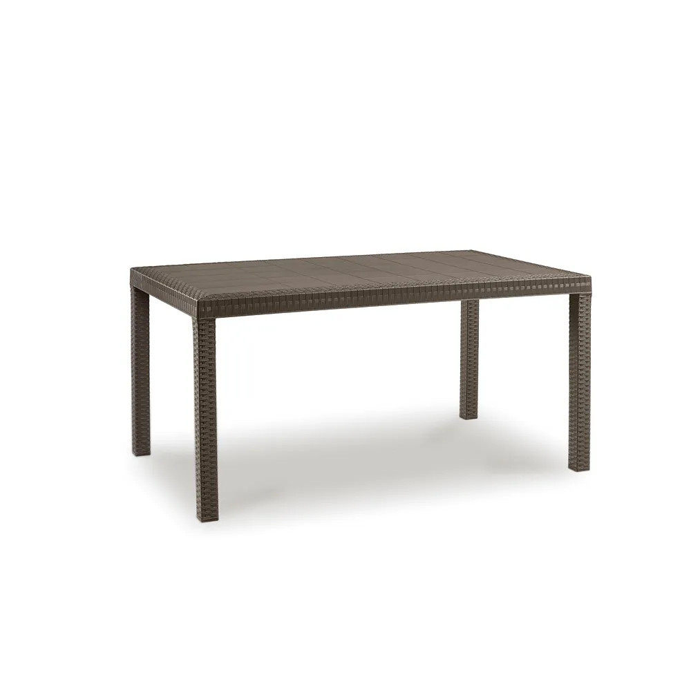 Această masă dreptunghiulară înaltă din ratan, de culoare maro , confortabilă și elegantă, cu dimensiunile de 150x90x74 cm, este fabricată în Italia. Fabricat din plastic rezistent la intemperii, poate fi amplasat și lângă piscină. O piesă de mobilier atemporală care va arăta ca nouă chiar și după ani de zile. Ușor de asamblat, nu necesită cunoștințe profesionale.
