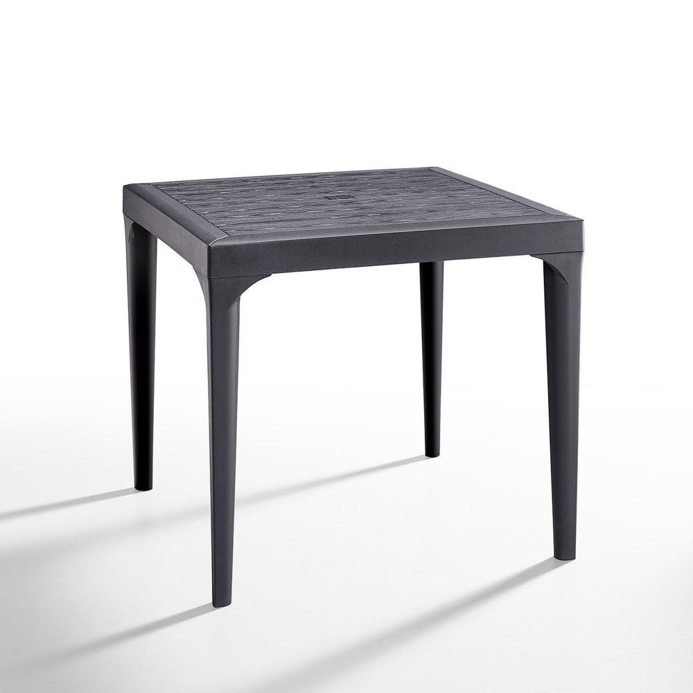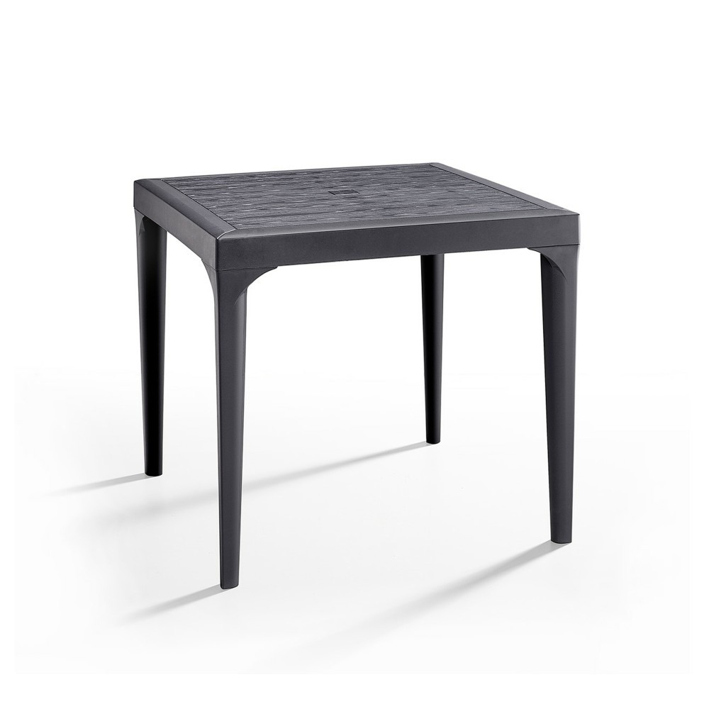 Această masă dreptunghiulară din plastic , de culoare grafit , confortabilă și elegantă, cu dimensiunile de 80x80x74 cm înălțime, este fabricată în Italia. Ușor de asamblat, nu necesită cunoștințe profesionale. Este durabil și poate rezista bine la condițiile meteorologice, așa că te poți baza pe el ani de zile. Este ușor de mutat, așa că îl poți pune oricând unde ai nevoie.