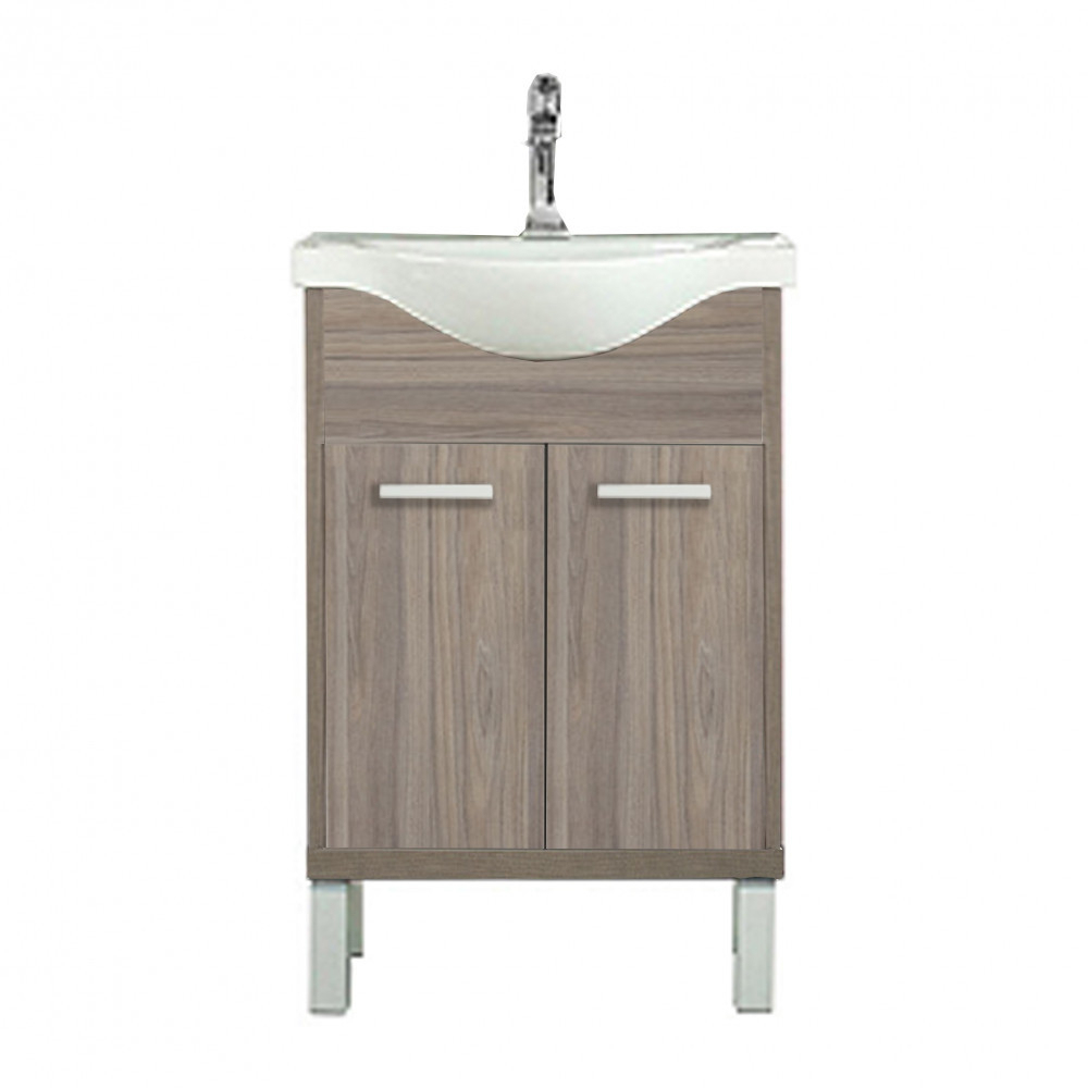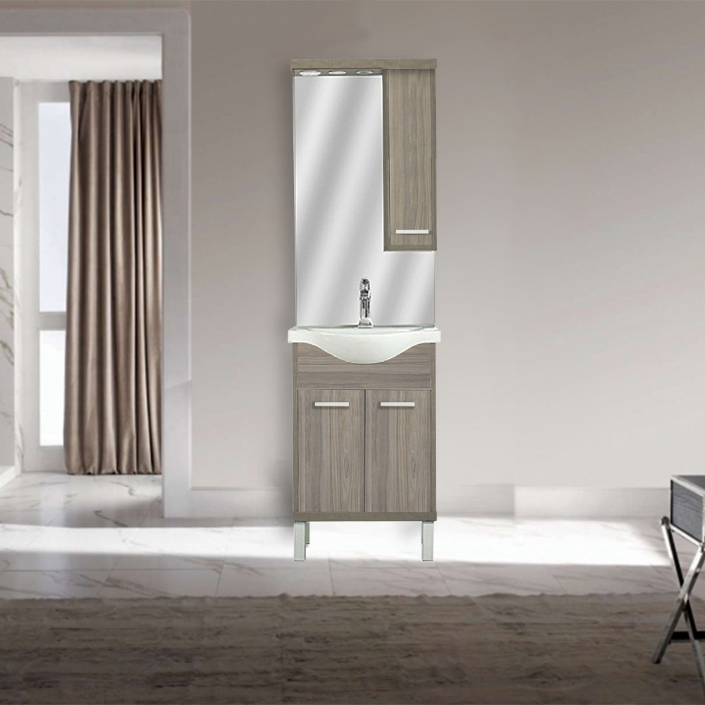 Mobilierul de baie ocupă puțin spațiu, dar are un dulap spațios unde pot încăpea confortabil articole de toaletă pentru baie. Datorită spațiului redus necesar, este potrivit și pentru mobilarea băilor mai mici, de exemplu în apartamentele cu panouri. Produsul este fabricat din plăci de mobilier de înaltă calitate și este prevăzut cu margini asortate în culori . Mobilierul de baie este disponibil cu lavoar .