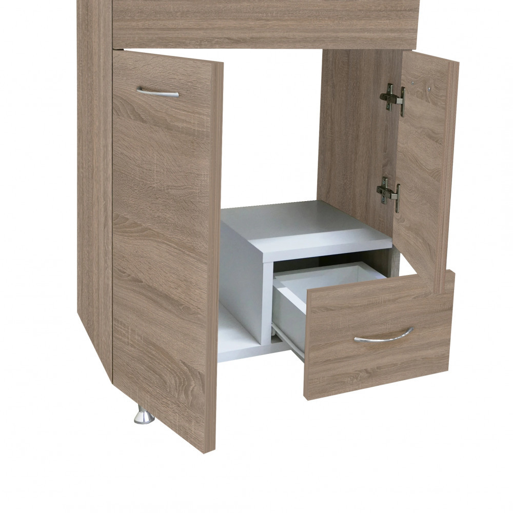 Pe lângă funcționalitate, o mare atenție a fost acordată, desigur,aspectului mobilierului. Datorită culorii gri Stejar Sonoma și liniilor moderne curate, acesta creează armonie în atmosfera oricărei băi.