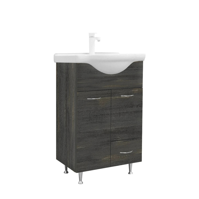 Mobilierul de baie ocupă puțin spațiu, dar are un dulap inferior spațios unde vă puteți depozita confortabil articolele de toaletă din baie. Datorită cerințelor reduse de spațiu, acestaeste potrivit și pentrubăi mai mici , de exemplu în apartamente prefabricate. Produsul este fabricat din panouri de mobilier de înaltă calitate și este livrat cu capace de margine de culoare asortată. Mobilierul de baie este disponibil și în variantă de picioare.