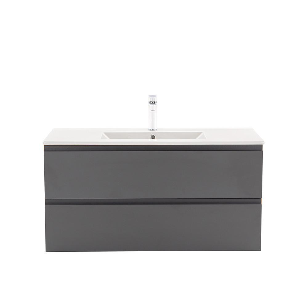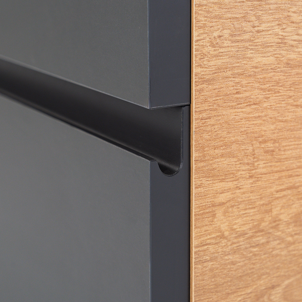 Dulapul Vario Pull 100 cu chiuvetă este o alegere elegantă și practică pentru băile moderne. Dimensiunile sale compacte îl fac ideal pentru băile mici și medii, iar designul cu profil J din stejar antracit conferă spațiului un aspect elegant. Închiderea amortizată a sertarelor și designul suspendat oferă confort și curățare ușoară, în timp ce materialele de calitate asigură o durabilitate îndelungată.