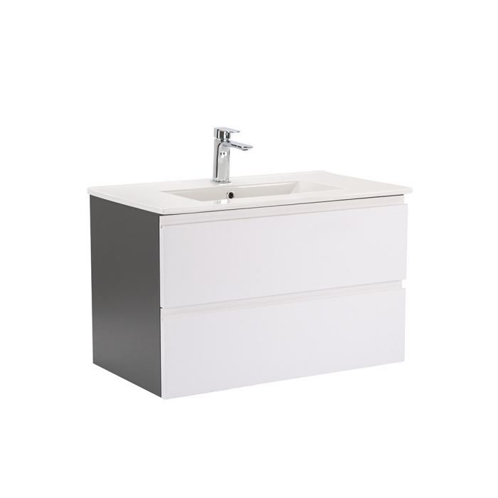 Dulapul Vario Pull 80 cu chiuvetă este o alegere elegantă și practică pentru băile moderne. Dimensiunile sale compacte îl fac ideal pentru băile mici și medii, iar designul cu profil J în alb antracit conferă spațiului un aspect elegant. Închiderea amortizată a sertarelor și designul suspendat oferă confort și curățare ușoară, în timp ce materialele de calitate asigură o durată lungă de viață.