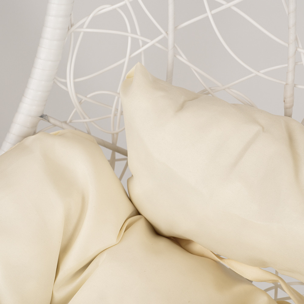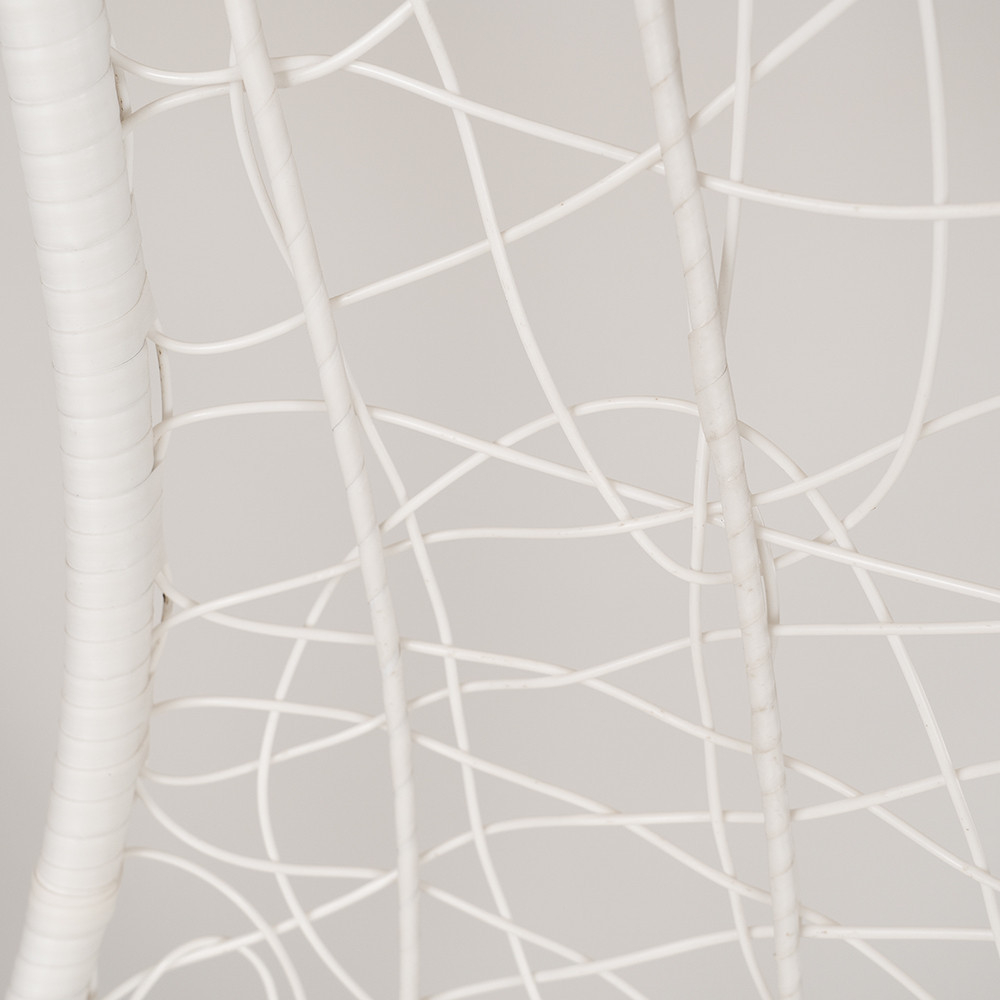 Coșul este fabricat din ratan PE împletit dens, care, pe lângă beneficiile sale estetice, este și rezistent la intemperii. Materialul de rattan de culoare albă este rezistent la condițiile meteorologice extreme, astfel încât hamacul își va păstra frumusețea în timp.