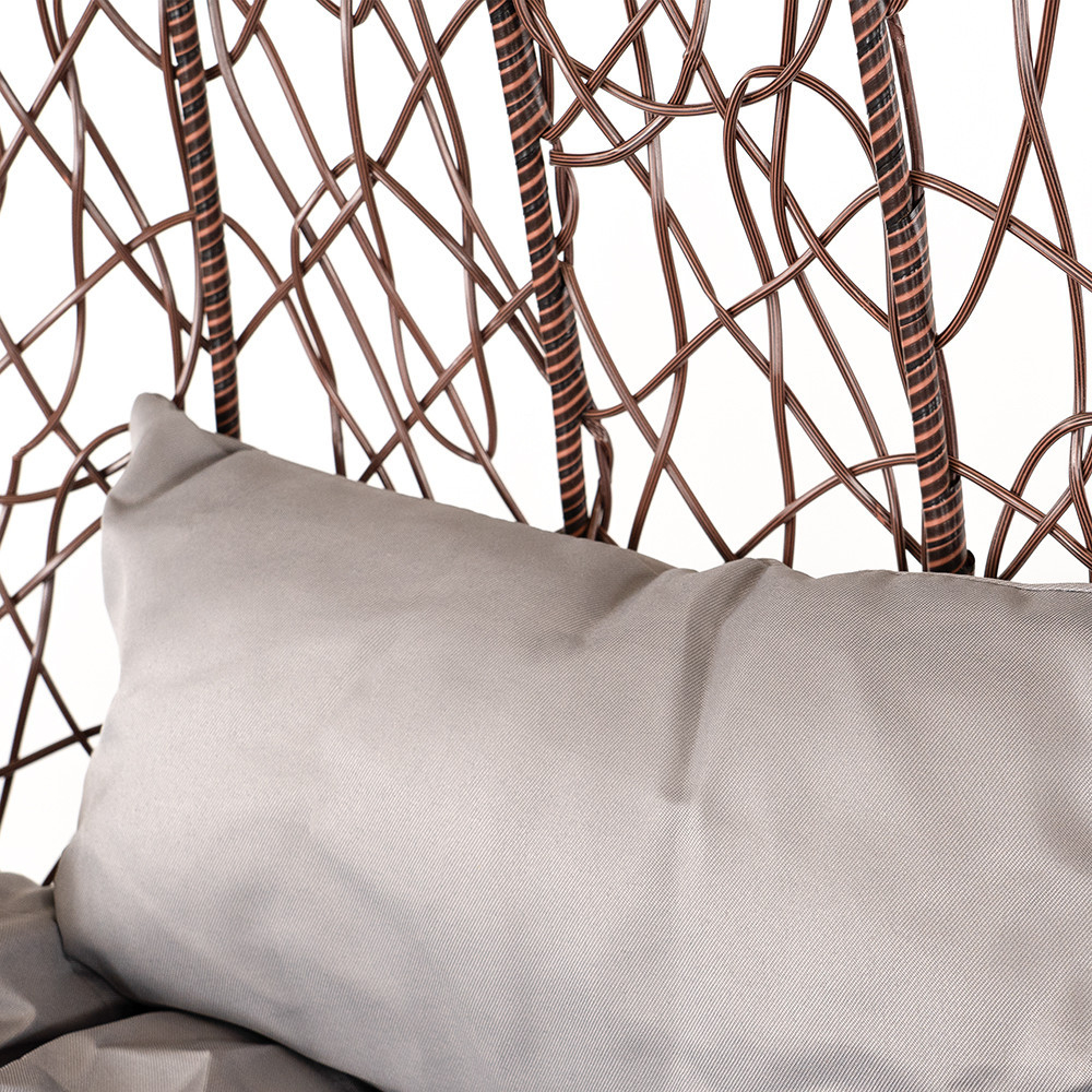 Coșul este fabricat din ratan PE împletit dens, care, pe lângă beneficiile sale estetice, este și rezistent la intemperii. Materialul de rattan de culoare maro este rezistent la condițiile meteorologice extreme, astfel încât hamacul își va păstra frumusețea în timp.