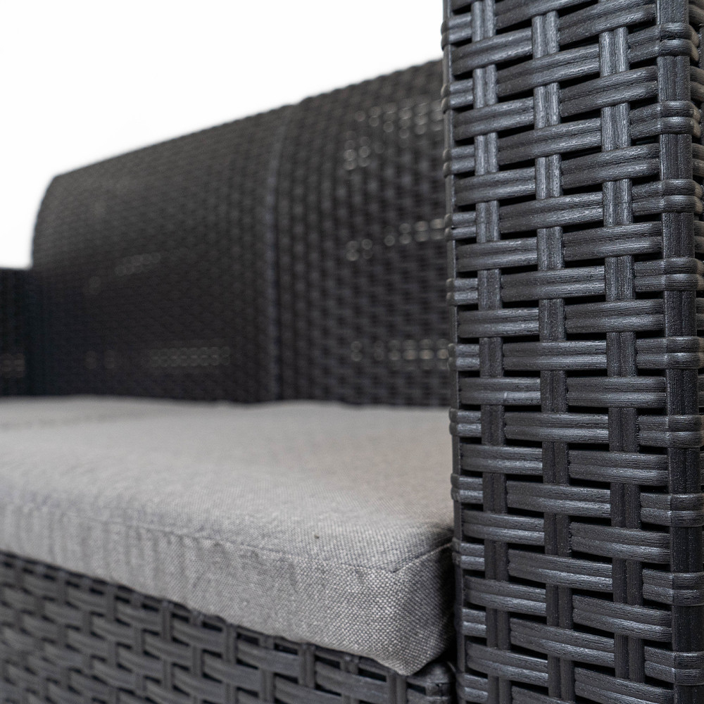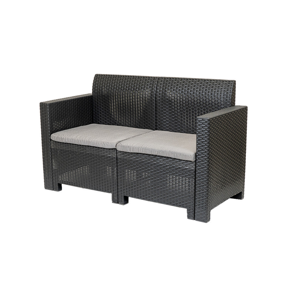 Aceasta este o canapea de grădină cu două locuri elegantă și confortabilă, cu pernă completă. Culoarea grafit și finisajul original de tip rattan vor satisface nevoile atât ale iubitorilor de stil modern, cât și ale celor mai clasici. Este o piesă atemporală, deoarece este fabricată din plastic rezistent la razele UV și la intemperii, o puteți lăsa afară în soarele arzător sau într-un duș de vară. Canoea vine și cu o pernă de scaun confortabilă, în culori coordonate, pentru un plus de confort. Este ușor de mutat, dar stabilă și nevoluminoasă, astfel încât poate suporta o mulțime de solicitări. Canapeaua de grădină Nero cu două locuri poate fi un accesoriu versatil pentru casa sau grădina dvs. sau poate servi, de asemenea, ca o zonă de relaxare confortabilă pe terasa unui restaurant.
