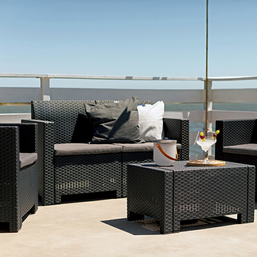 Această canapea de grădină Nero cu 2 locuri nu necesită întreținere specială, este suficient să o curățați cu apă și orice detergent ușor. Este ușor de păstrat curată și foarte simplu de asamblat. Culoarea mobilierului și a pernei este rezistentă la pete și nu necesită curățare frecventă.