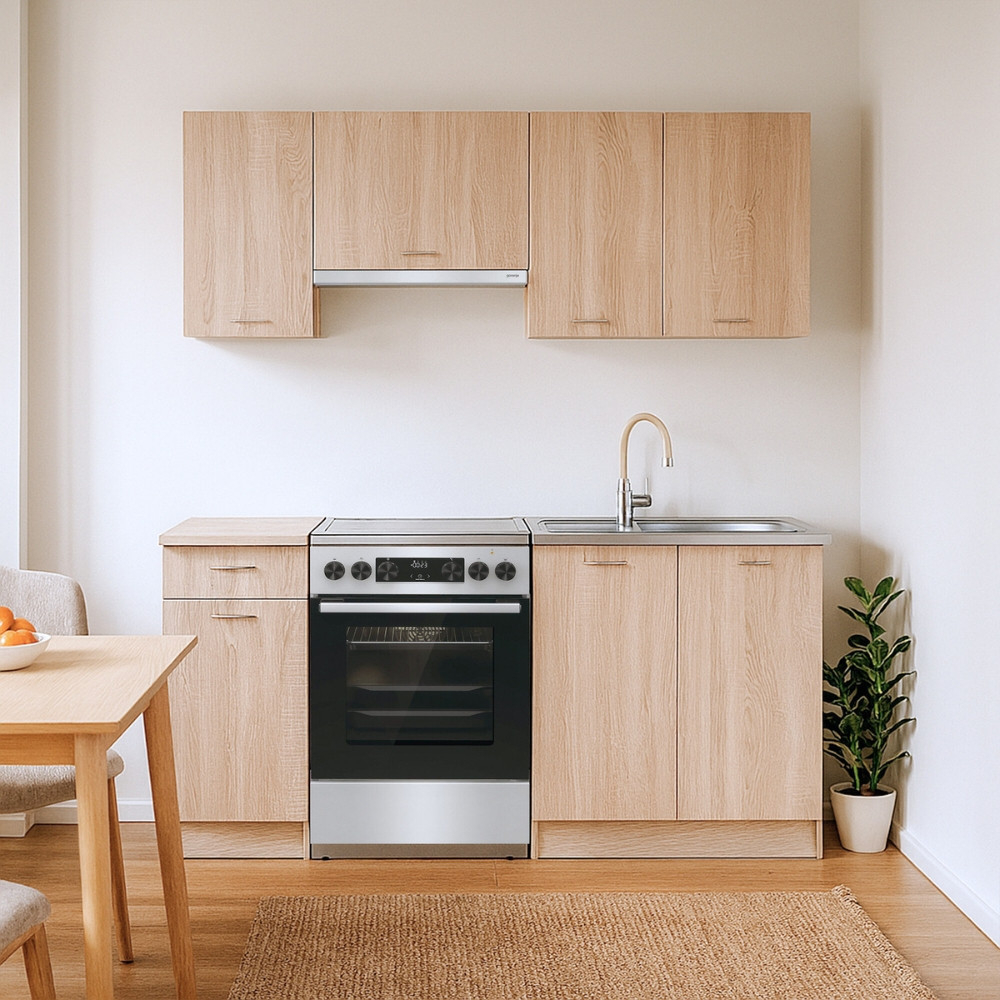 Mobilier de bucătărie modern cu dulap din stejar Sonoma, ideal pentru bucătării mici
