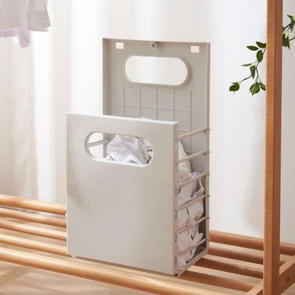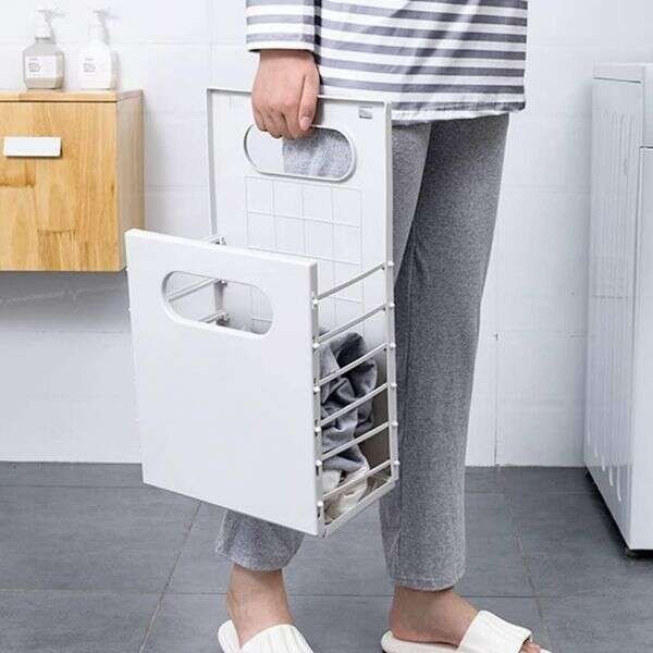 Eliv este un coș de rufe pliabil durabil, dar elegant, care vă ajută să păstrați casa ordonată - fie că este vorba de haine murdare, jucării pentru copii, pături sau diverse articole de uz casnic. Fabricat din plastic ABS gros, este ușor, dar suficient de robust pentru utilizarea zilnică. Are doar 3,5 cm grosime atunci când este pliat, astfel încât poate încăpea aproape oriunde: într-un dulap, lângă mașina de spălat sau chiar în spatele ușii. Pereții laterali perforați asigură o ventilație continuă, reducând acumularea de umiditate și mirosuri. Un mâner încorporat îl face ușor de transportat, iar o filă pe spate îi permite să fie fixat pe perete în spălătorie, baie sau bucătărie.