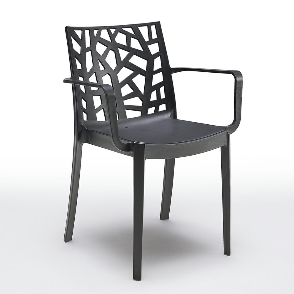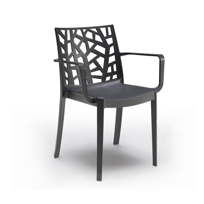 Acesta este un scaun de grădină cu un design deosebit. Culoarea grafit și interfața în stil modern vor atrage majoritatea utilizatorilor. Fabricat din plastic durabil, rezistent la intemperii și radiații UV. Este ușor de curățat și foarte simplu de asamblat. Datorită designului său elegant, se potrivește chiar și pe balcoane sau terase mici și poate fi transformat într-o zonă de luat masa modernă cu masa asortată. Arată grozav în săli de evenimente, terase ale restaurantelor în aer liber și cafenele, atât în interior, cât și în exterior.