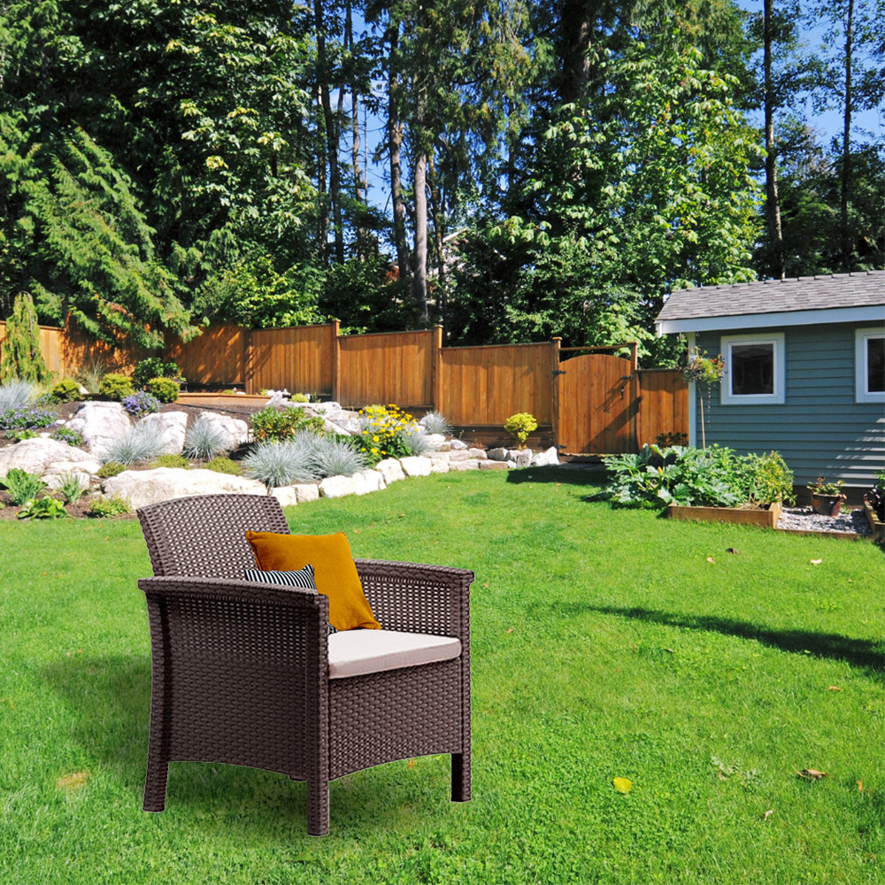 Elegantul scaun de grădină din ratan este la fel de confortabil ca un fotoliu și poate fi un plus versatil pentru casa, grădina sau terasa dumneavoastră. Poți folosi acest scaun în orice condiții meteorologice, nu trebuie să-l aduci înăuntru dacă vine o ploaie torențială bruscă, deoarece este conceput pentru exterior.