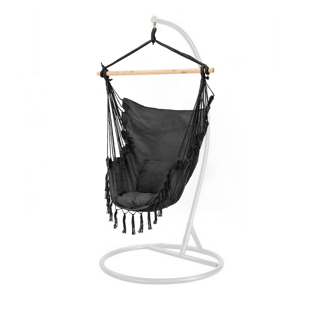 A puerto függőszék állvánnyal szett ötvözi a kényelmet és a mobilitást: a Puerto függőszék minden pihenésre vágyó álma, míg az állvány lehetővé teszi, hogy a rögzítéshez ne kelljen faágakat keresni vagy plafonfúrást végezni. A fekete textil és a fehér állvány természetes, harmonikus összhangot teremt, ami tökéletesen illeszkedik bármely kertbe, teraszra, balkonra vagy beltéri enteriőrbe.