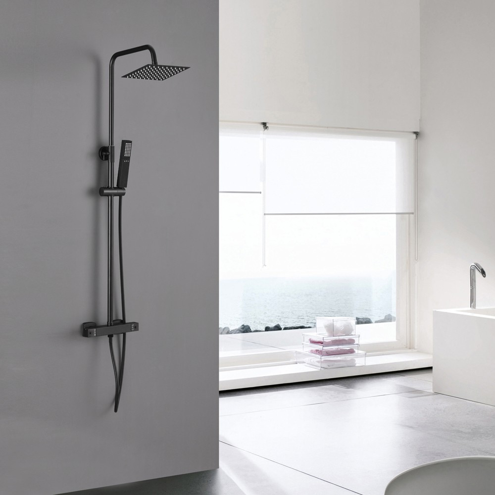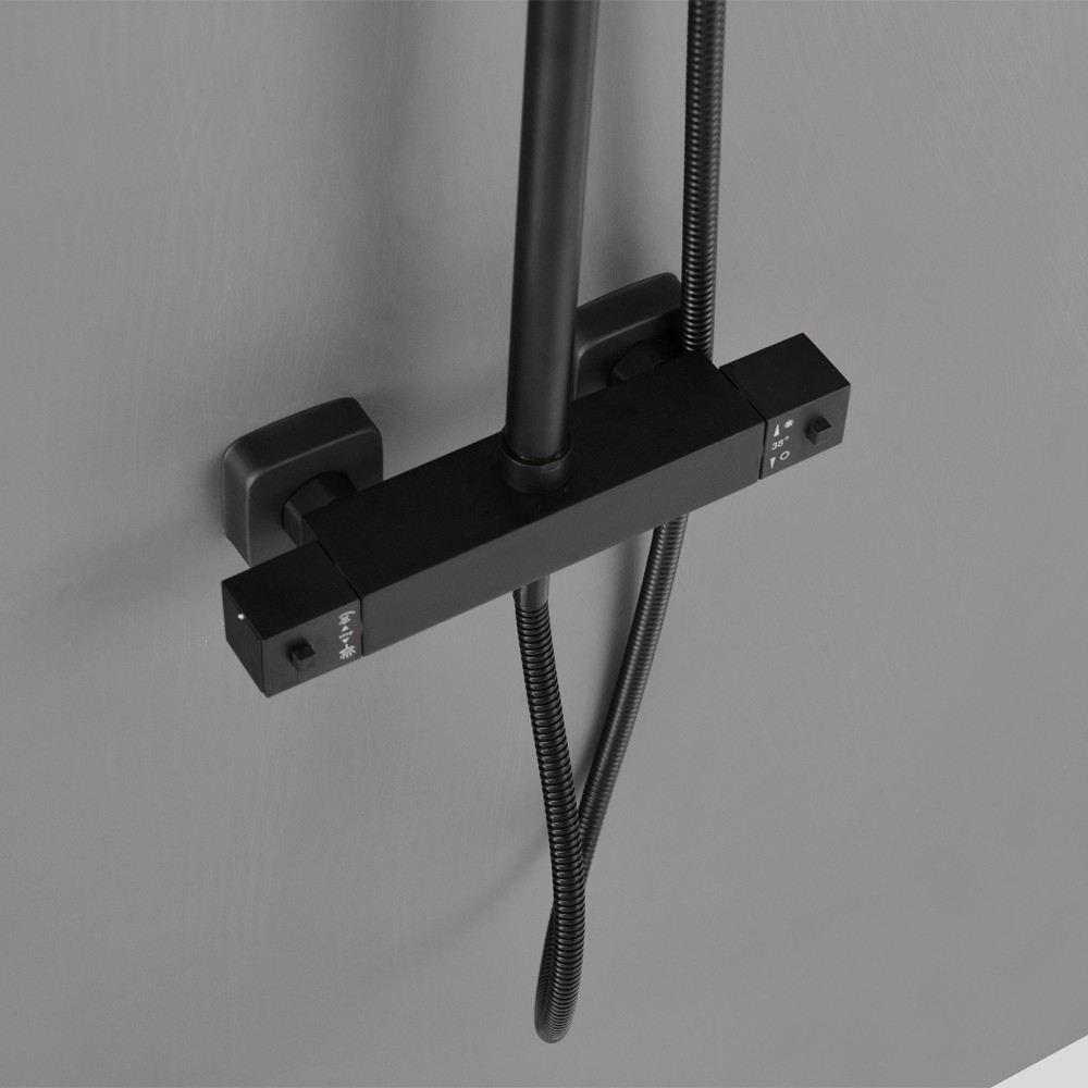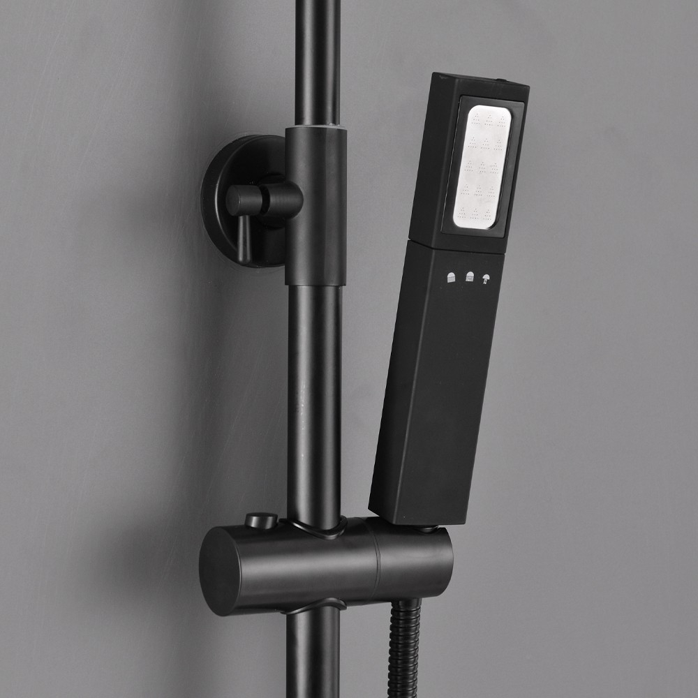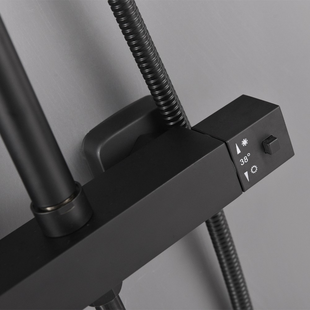 Robinet termostatic Puteți regla temperatura apei folosind robinetul termostatic. | Comutator de funcții Comutatorul de funcții vă permite să alegeți între utilizarea dușului cu efect de ploaie tropicală sau a dușului manual. | Înălțime reglabilă Puteți regla înălțimea corpului setului de duș după dorință.