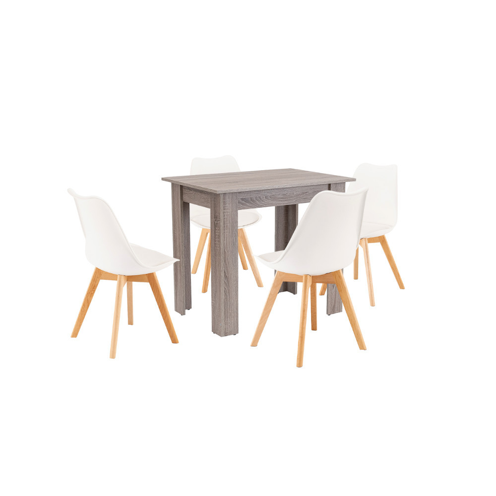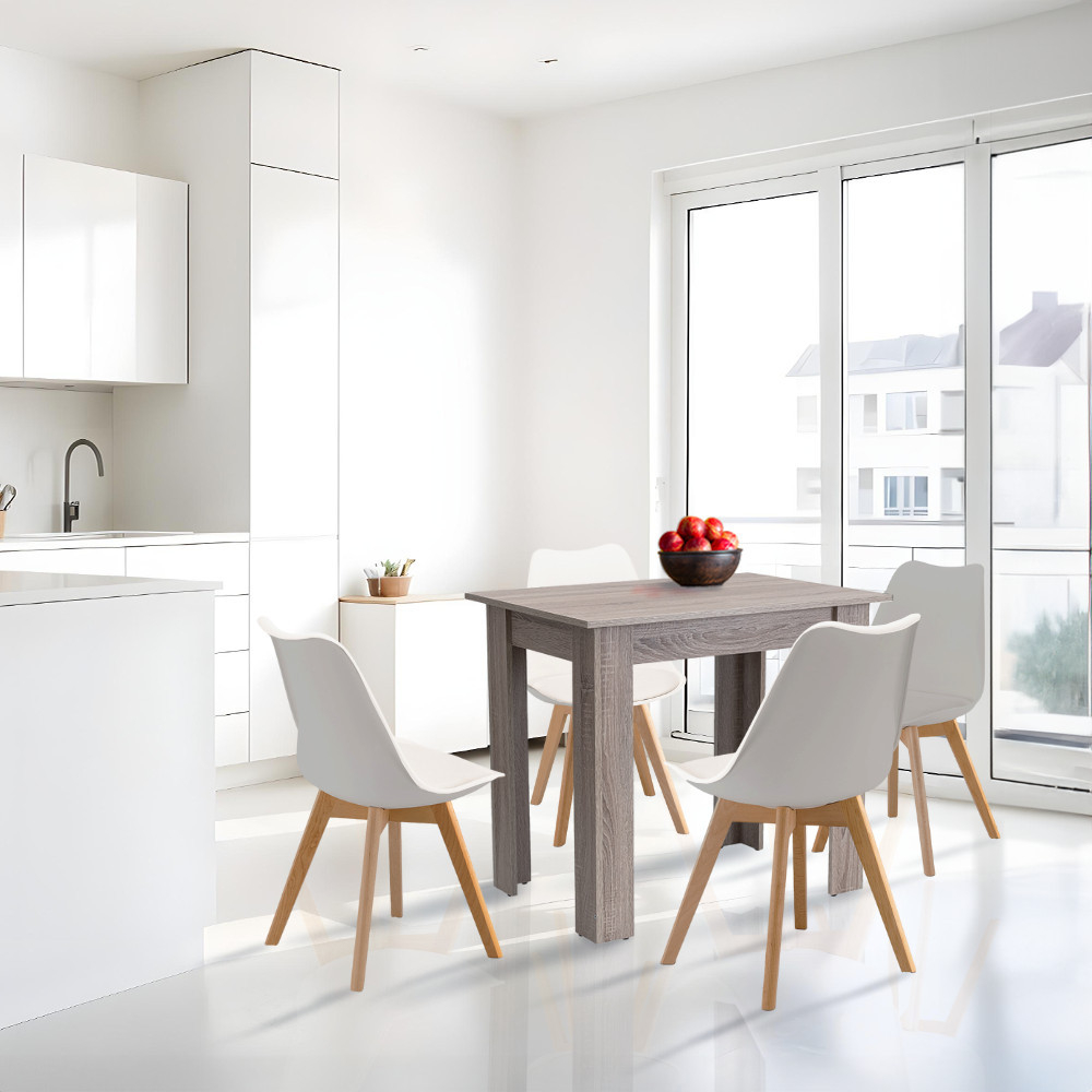 Setul de masă Amina 4 în 1 de la marca Leziter este o alegere perfectă pentru apartamente moderne, restaurante și bucătării elegante de birou. Setul este format din 4 scaune și 1 masă, o combinație armonioasă între popularul scaun de dining Silla și masa standard Yorki, combinând funcționalitatea cu un design atemporal. Setul de masă este ideal pentru 4 persoane și, datorită dimensiunilor sale, poate fi amplasat practic în camere mai mici.