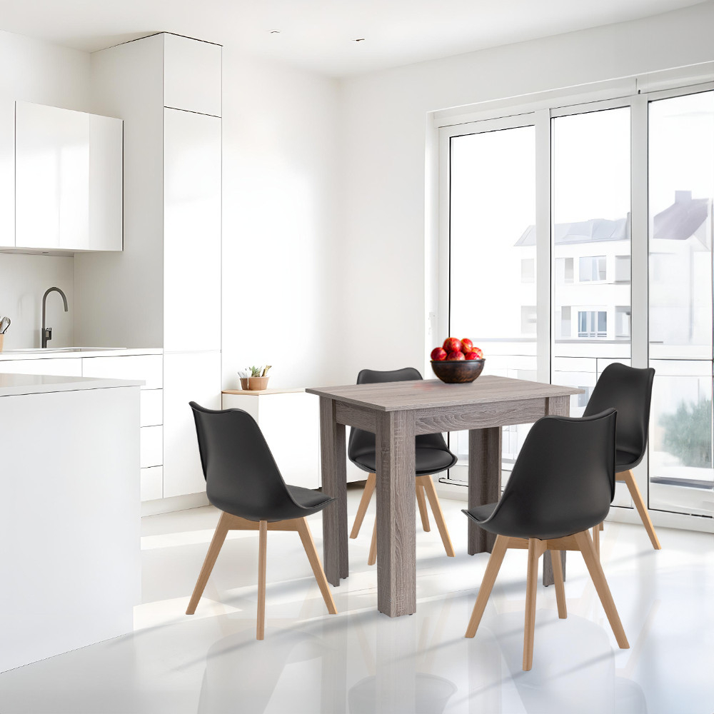 Setul de masă Amina 4 în 1 de la marca Leziter este o alegere perfectă pentru apartamente moderne, restaurante și bucătării elegante de birou. Setul este format din 4 scaune și 1 masă, o combinație armonioasă între popularul scaun de dining Silla și masa standard Yorki, combinând funcționalitatea cu un design atemporal. Setul de masă este ideal pentru 4 persoane și, datorită dimensiunilor sale, poate fi amplasat practic în camere mai mici.