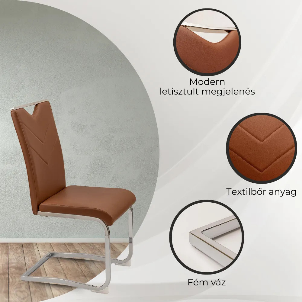 Scaunele de sufragerie Letti au un aspect curat și modern, care garantează crearea unei atmosfere speciale în orice sufragerie. La proiectarea scaunelor, s-a acordat o atenție deosebită atât aspectului, cât și designului, pentru a oferi confort maxim utilizatorului. Pentru suprafața de ședere a fost folosită piele textilă, iar pentru picioarele și structura scaunului a fost folosit metal. Scaunul este disponibil în patru culori diferite, astfel încât fiecare poate găsi modelul potrivit pentru el. Produsul este livrat montat plat, prevenind orice deteriorare. Asamblarea scaunului nu durează mult.