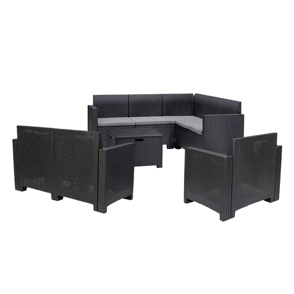 | Elemente | Canapea de colț, masă pătrată, scaun de grădină, canapea de grădină |