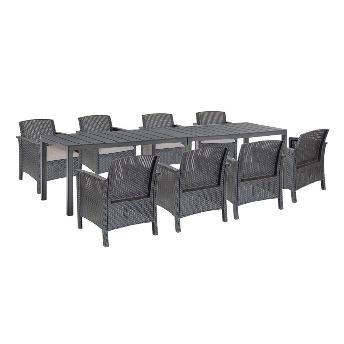 Nu așteptați vremea bună - cu setul de mobilier Grant 8+1, vă puteți bucura de momentele în aer liber cu stil, confort și fără griji!